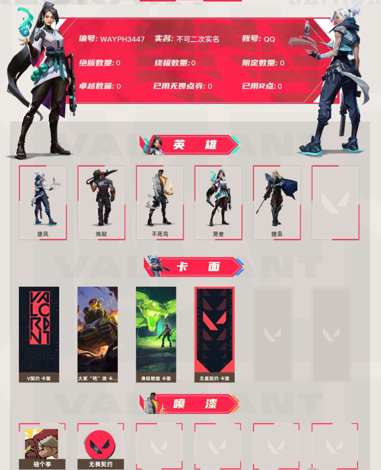 WAYPH3447 Lv3|未定级, 刀皮数量0,枪皮数量0(绝版0限定0终极0卓越0);皮肤资产价值0,已用R点0